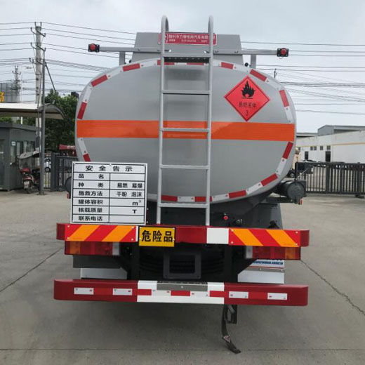 罐體總容量:7.71立方米,罐體有效容積:7.34立方米,危險貨物運輸車輛的類型為FL型,介質zui大密度830千克/立方米;加油裝置下置時,罐體尺寸(長×長軸×短軸)(mm)為:4700×1750×1200;當加油裝置上置時,罐體尺寸(長×長軸×短軸)(mm)為:3850×1950×1300;僅采用3800mm軸距;選裝加油裝置下置,選裝出口箱樣式;側、后防護裝置材料材質:Q235B, 側、后防護均采用螺栓連接,后防護裝置斷面尺寸為(mm):80×150,后部防護離地高度:430mm;安裝具有衛星定位功能的行駛記錄儀,排氣管前置,安裝前輪盤式制動器及限速裝置,限速80km/h,僅采用底盤子午線輪胎; ABS型號及生產廠家為:3631010-C2000/東科克諾爾商用車制動系統(十堰)有限公司,J ABS/焦作博瑞克控制技術有限公司;加油裝置型號/生產廠家:CS20D1110F/正星科技有限公司;HS18012B/托肯恒山科技(廣州)有限公司;ZH3111P/佛山市眾澤機電科技有限公司;HT-CZ1111/湖北華特設備有限公司;轉向輪安裝bao胎應急防護裝置.該車型可選裝ETC車載裝置.