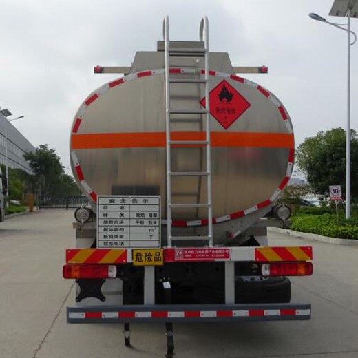 罐體有效容積:30.5立方米,危險貨物運輸車輛的類型為FL型,介質zui大密度700千克/立方米;罐體尺寸(長×長軸×短軸)(mm):8750×2490×1790;側、后防護裝置材料材質:Q235B, 側、后防護均采用螺栓連接,后防護裝置斷面尺寸為(mm):80×150,后部防護離地高度:420mm;隨底盤選裝駕駛室,選裝罐體兩側管廂樣式及出口箱樣式,選裝罐體尾部帶落水管和后示廓燈支架;安裝具有衛星定位功能的行駛記錄儀,安裝前輪pan式制動器和限速裝置,限速80km/h,僅采用底盤子午線輪胎;安裝EBS, EBS型號/生產企業:0 486 106 XXX/克諾爾商用車系統企業管理(上海)有限公司;發動機型號及油耗值(L/100km)為:X11NS6B360(33.6),該車后軸采用空氣懸架;轉向輪安裝bao胎應急防護裝置.該車型可選裝ETC車載裝置;