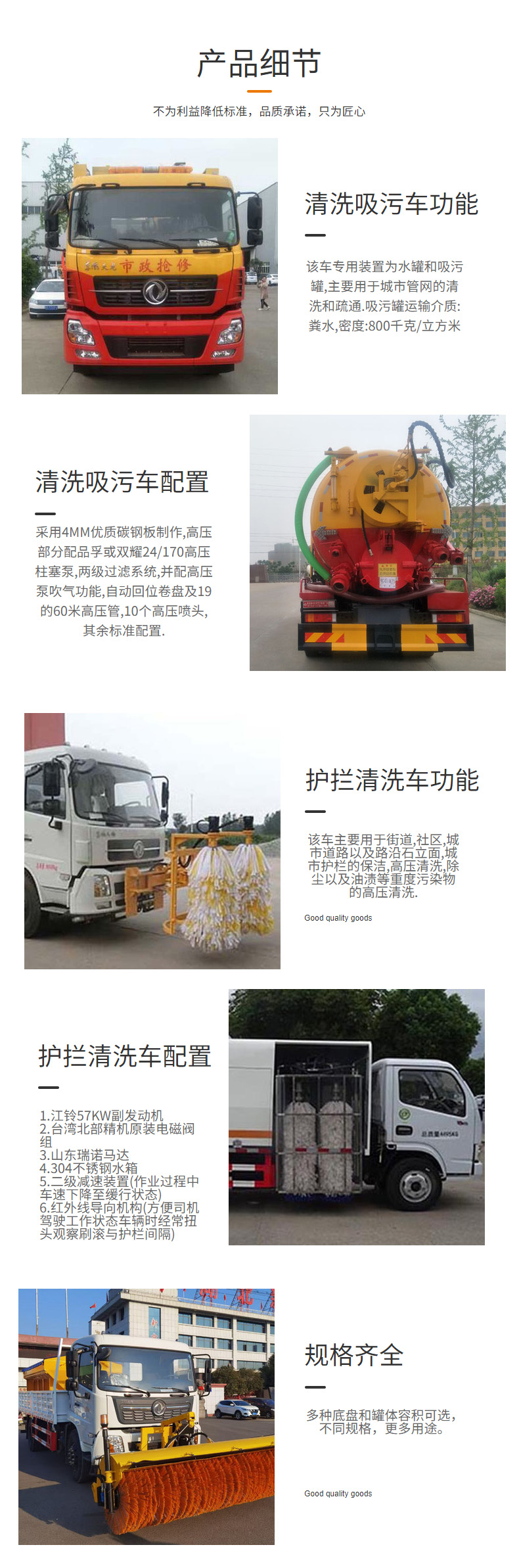 ★清洗車也稱為高壓清洗車,主要用于清洗城市下水道、管道的沉積物、死角泥溝的疏通,也可用于清洗工業排液管道、墻面、公路、廣場地面等。