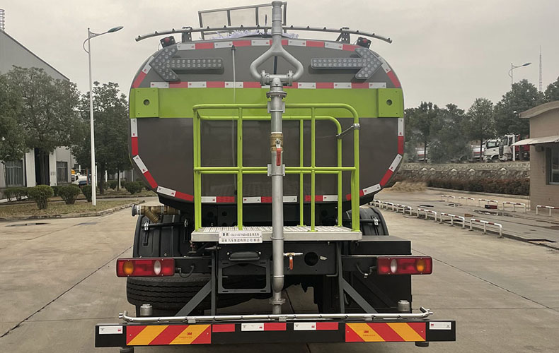 該車為墻壁,隧道壁,隔音墻等清洗作業車.專用裝置為清洗滾刷系統和罐體.側防護材質鋁合金,連接方式為螺栓連接;后防護材料材質:Q235,連接方式為焊接連接.后防護截面尺寸(mm):60×140,離地高430mm,罐體外形尺寸(長×寬×高)(mm):4000×2300×1400,罐體總容量8.93立方米,罐體有效容積8.5立方米.該車僅選用底盤4700mm軸距改裝,車輛前伸1170mm.ABS型號/生產廠家:3631010-C2000/東科克諾爾商用車制動系統(十堰)有限公司,ABS 8/東科克諾爾商用車制動系統(十堰)有限公司, 4460046450/威伯科汽車控制系統(中國)有限公司,J ABS/焦作博瑞克控制技術有限公司.隨底盤選裝限速裝置,限速89km/h.