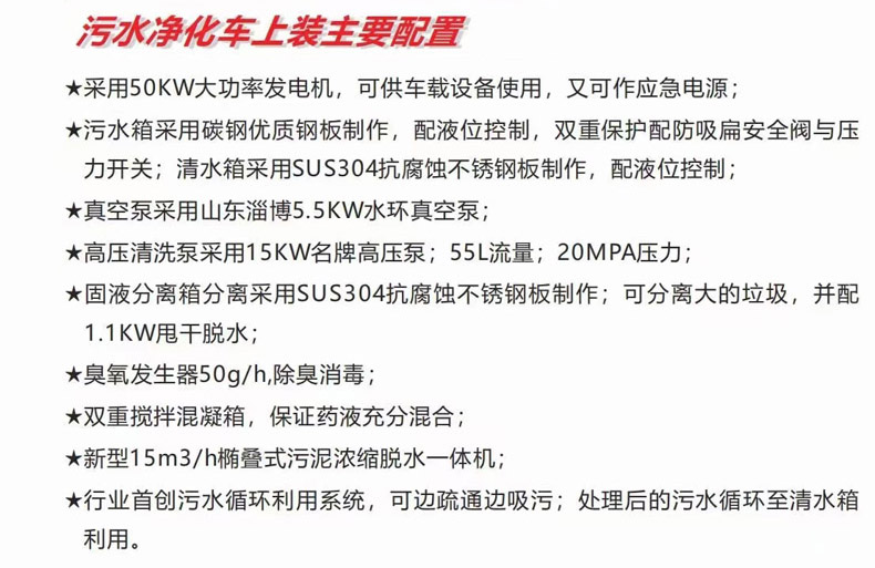 污水處理車/污水凈化車優勢亮點: