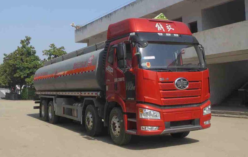 罐體有效容積:30.4立方米,危險貨物運輸車輛的類型:FL型車輛,類項號:3;罐體尺寸(長×長軸×短軸)(mm)為:8800×2470×1770;側、后防護裝置材質均為:Q235B,側、后防護均采用螺栓連接,后部防護裝置斷面尺寸(寬×高)80×150(mm),后部防護離地高度:500mm;選裝擋泥板樣式,選裝箱門樣式和管廂樣式;安裝具有衛星定位功能的行駛記錄儀,僅采用子午線輪胎排氣尾管前置,前置消聲器;前軸裝配盤式制動器;安裝限速裝置,限速79km/h的底盤.ABS系統生產廠家: 長春瑞立科密汽車電子有限公司,型號:CM4XL;油耗申報值(L/100km)與發動機對應關系:37.65(CA6DK1-32E6),38.23(CA6DL6-36E6).該車后軸為采用空氣懸架.轉向輪安裝爆胎應急防護裝置.