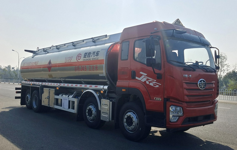 > 產品中心 > 解放油罐車系列 解放油罐車_液罐車_解放前四后六20噸鋁合金運油車★13908669111★楚勝牌CSC5311GYYLCA6A型鋁合金運油車,采用解放CA1320P28K2L6T9BE6A81底盤改裝而成,該車適用于危險品運輸,運送危險貨物車輛類型為:FL型.準運介質zui大密度:830千克/立方米,罐體總容量24.5立方米,罐體有效容積24.1立方米,更多油罐車盡在:www.4fj.com.cn