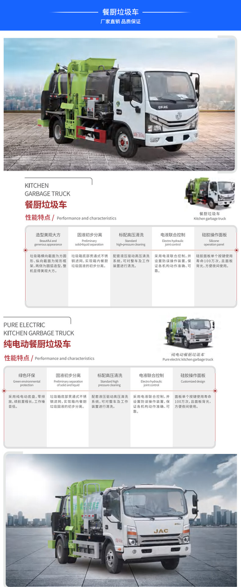 垃圾車價格_純電動垃圾車_東風小型純電動餐廚垃圾車★13908669111★產品名稱CSC5080TCAJH6BEV型純電動餐廚垃圾車,采用東風EQ1080TTZEVJ1底盤改裝而成,該車用于餐廚垃圾收集清運,主要專用裝置為箱體、上料提升機構等組成.標配固液初步分離,垃圾箱底部貫通式不銹鋼濾網,實現箱內餐廚垃圾固液的初步分離。標配高壓清洗配套液壓驅動高壓清洗系統,可對整車及工作裝置進行清洗。更多垃圾車盡在:www.4fj.com.cn