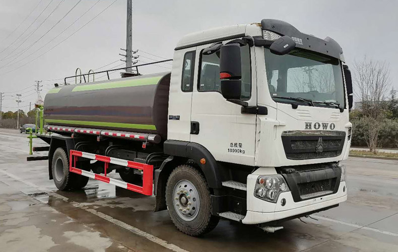 該車用于路面灑水及園林綠化,主要專用裝置為噴灑總成。罐體總容量11.61立方米,罐體有效容積11.05立方米,罐體外形尺寸(長×寬×高)(mm): 5000×2350×1450。側、后防護材料均為Q235,側防護螺栓連接,后防護焊接;后防護截面尺寸(mm) 120×50,下邊緣離地高480mm。隨底盤選裝駕駛室,僅采用軸距(mm):4500。ABS型號/生產廠家:4460046300/威伯科(上海)管理有限公司,選裝EBS,EBS型號/生產廠家:EBS3/威伯科(上海)管理有限公司。整車長/后懸對應關系為(mm):8600/2670,8300/2370。選裝后部弧形噴霧裝置,后霧炮裝置,后平臺樣式,外觀樣式,選裝圓管道箱。選裝金色標志,可不選裝玻璃后風窗,選裝保險杠,選裝翼子板,選裝上車踏步,選裝觀察窗。選裝無高位花灑,選裝單邊高位花灑,選裝罐體兩側無炮筒管.