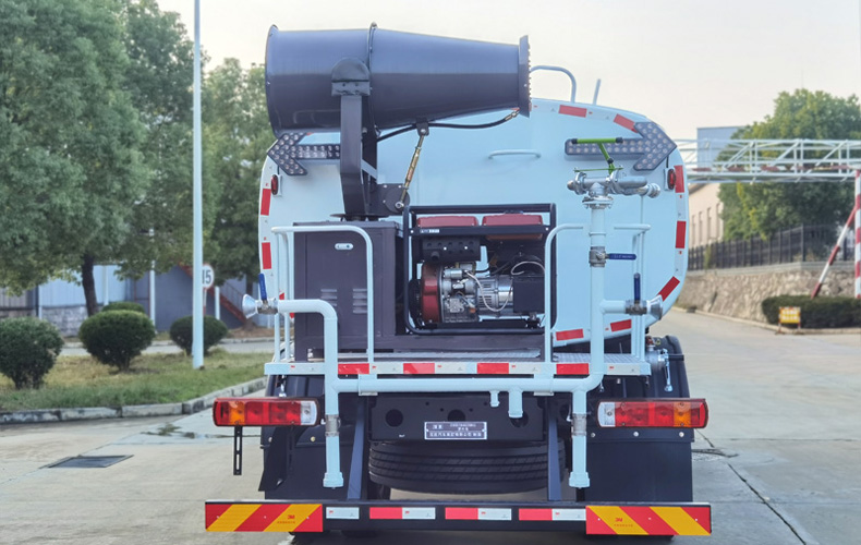 消防灑水車安裝消防車專用消防泵、消防炮、消防取力器。罐體后帶工作平臺(tái),平臺(tái)上安裝綠化灑水炮,灑水炮可全方位旋轉(zhuǎn),帶前沖后灑,帶側(cè)噴,可連續(xù)調(diào)成直流狀、霧狀、大雨、小雨、毛毛雨,帶安全護(hù)欄。罐體頂部安裝消防水炮。帶消防接口,可通過(guò)消防栓進(jìn)水,帶自流閥,消防綠化卷盤(pán)。