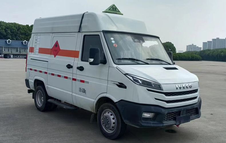 該車適用于運(yùn)輸危險(xiǎn)品,運(yùn)輸具有獨(dú)立容器(瓶)包裝的物品,運(yùn)送危險(xiǎn)物品類項(xiàng)號(hào):3.廂體頂部封閉,不可開(kāi)啟.側(cè)防護(hù)為車身結(jié)構(gòu)代替,后防護(hù)材料為Q235,后防護(hù)截面尺寸(mm)100×50,下邊緣離地高370mm.僅選用排氣管前置、前輪盤式制動(dòng)及子午線輪胎的底盤,轉(zhuǎn)向輪安裝輪胎爆胎應(yīng)急防護(hù)裝置,前懸架型式為雙擺臂扭桿獨(dú)立式,裝備限速裝置,限速80km/h.安裝帶有衛(wèi)星定位功能的行駛記錄儀.ABS系統(tǒng)型號(hào)/生產(chǎn)廠家為:3550B500/浙江亞太機(jī)電股份有限公司.發(fā)動(dòng)機(jī)/油耗值(L/100km)對(duì)應(yīng)關(guān)系為:SOFIM8140.47Z6/10.22.該車可選裝直接供電式ETC車載裝置.整備質(zhì)量不含備胎,含滅火器及隨車工具.貨廂材質(zhì)/厚度:外冷軋鋼板/1.5mm,夾層聚氨脂/8mm,內(nèi)壁玻璃鋼/2mm.貨廂重量為650kg.