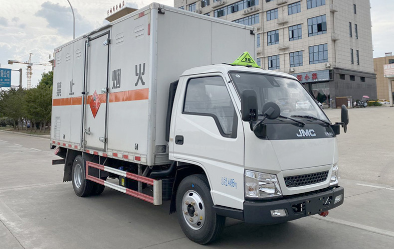1、該車為危險品運輸車.運輸具有獨立容器(瓶)包裝的易燃液體物品.運送危險物品類項號:3類.廂體頂部封閉不可開啟.2、側,后防護材料均為Q235,側防護螺栓連接,后防護焊接,截面尺寸(mm):100×50,下邊緣離地高430mm.3、整備質量含備胎,滅火器及隨車工具;貨廂重量為1090kg;材質/厚度:復合板結構廂體:底板材質為Q235,厚度3mm,側板為外Q235+中間阻燃泡沫+內純鋁板,厚度42mm;瓦楞板結構廂體:底板材質為Q235,厚度3mm,側板為Q235,厚度1.5mm.4、僅選用排氣管前置、限速裝置(限速80km/h)、前輪盤式制動及子午線輪胎的底盤,轉向輪安裝輪胎爆胎應急防護裝置,安裝具有衛星定位功能的行駛記錄儀.ABS系統控制器型號/生產企業: APG3550500A/浙江亞太機電股份有限公司,3550B500/浙江亞太機電股份有限公司,VIE ABS-II/浙江萬安科技股份有限公司.發動機/油耗值(L/100km)對應關系為:JX493ZLQ6D/10.75,JX4D25A6H/10.83.隨底盤選裝駕駛室,選裝白色中網,選裝白色前保,選裝黑色前保,選裝廂體側面選裝開門型式及位置,選裝不帶側開門,選裝貨廂平面或瓦楞結構;廂體側面選裝開百葉窗,選裝后部樣式,該車可選裝直接供電式ETC車載裝置.