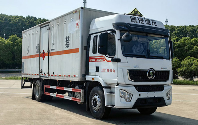 該車適用于運輸危險品,運輸具獨立容器(瓶)包裝的物品,危險貨物類項號:3.廂體頂部封閉,不可開啟.側、后防護材料均采用Q235,側防護螺栓連接,后防護焊接,截面尺寸(mm)120×50,下邊緣離地高500mm.液壓尾板收起狀態水平長度為290mm,尾板質量為550kg.選裝無后尾板時,后防護焊接,截面尺寸(mm)120×50,下邊緣離地高500mm.僅選用軸距(mm)4700,5100.整車外形長/軸距/后懸對應關系為(mm):8600/4700/2560,9200/5100/2760.僅選用排氣管前置、限速裝置(限速79km/h)、前輪盤式制動及子午線輪胎的底盤,轉向輪安裝輪胎爆胎應急防護裝置,后輪采用空氣懸架.安裝帶有衛星定位功能的行駛記錄儀.EBS系統型號/生產廠家:EBS3/威伯科汽車控制系統(中國)有限公司,CM-EBS/廣州瑞立科密汽車電子股份有限公司.發動機/油耗值(L/100km)對應關系為:B6.2NS6B230/26.60,B6.2NS6B210/26.60,WP6H270E61/26.66,WP6H245E61/26.66,WP4.6NQ220E61/26.53,B6.2NS6B245/26.60,B6.2NS6B260/26.60,WP4.6NQ220E61A/26.53,WP4.6NQ220E62/26.53,WP7H270E68/25.39.該車可選裝直接供電式ETC車載裝置.隨底盤選裝駕駛室,選裝翼子板外觀.選裝遮陽罩外觀、前組合燈具,選裝儲氣罐,電瓶框安裝位置.選裝后處理器樣式及后處理器隔熱罩.選裝液壓尾板樣式.選裝后門雙拉桿.選裝瓦楞結構,廂體側面選裝不同型式側開門及開門位置或不帶側門,選裝開百葉窗,選裝后門結構.