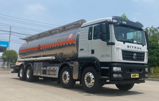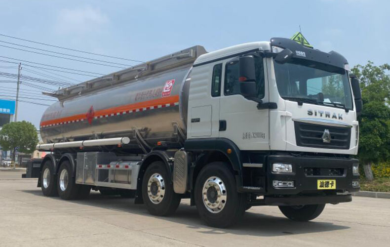 罐體總容量:26.4立方米,罐體有效容積:25.1立方米,危險貨物運輸車輛的類型為FL型,介質zui大密度810千克/立方米;罐體尺寸(長×直徑)(mm)為:9000×2000;僅采用1800+4575+1400mm軸距;隨底盤選裝駕駛室及前保險杠,選裝后處理器及尿素罐位置,選裝側防護工具箱樣式,選裝尾部出口箱樣式,選裝管廂樣式,選裝罐頂保護裝置樣式及罐頂外側無護欄,選裝后爬梯位置;側、后防護裝置材料材質:Q235B,側、后防護均采用螺栓連接,后防護裝置斷面尺寸為(mm):80×150,后部防護離地高度:470mm;安裝具有衛(wèi)星定位功能的行駛記錄儀,排氣管前置,安裝前輪盤式制動器和限速裝置,限速80km/h,僅采用底盤子午線輪胎;安裝EBS,EBS系統(tǒng)控制器生產(chǎn)企業(yè)/型號為采埃孚商用車系統(tǒng)(青島)有限公司/EBS3;僅適用發(fā)動機型號及油耗值(L/100km)為:MC07.31-60(38.2),MC07.33-60 (38.2),MC07.34-60(38.2),WP8.350E61(38.2),MC07H.29-60(38.2),MC07H.33-60(38.2),MC07H.35-60(38.2),WP7.300E61(38.2),WP7H320E62(38.2).該車后軸采用空氣懸架;轉向輪安裝bao胎應急防護裝置.該車型可選裝ETC車載裝置;